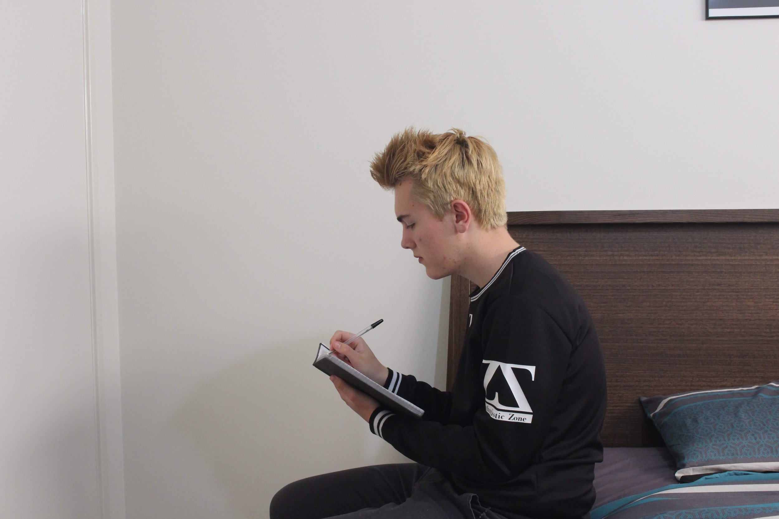 Whilst studying visual design at college, Liam writes and self‑publishes his second book, Alive, a post-apocalyptic novella about a creative who hides their spirit from the world.
